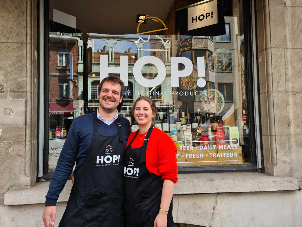 Alexandra & Sébastien devant Hop! Avenue des Celtes 22 à Etterbeek.